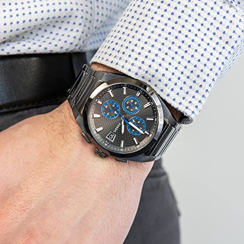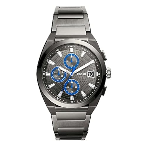 Fossil - ساعة يد دائرية للرجال بانالوج بعقارب وحركة كوارتز، مصنوعة من الستانلس ستيل بلون رمادي FS5830 من فوسيل
