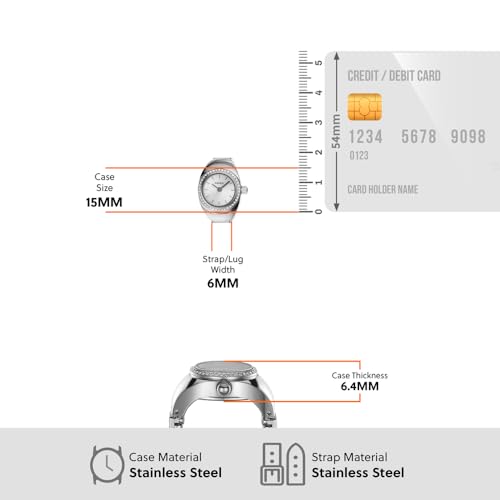 Fossil - ساعة رينغ 5321 للنساء من فوسيل، لون فضي، 15 ملم، من الفولاذ المقاوم للصدأ