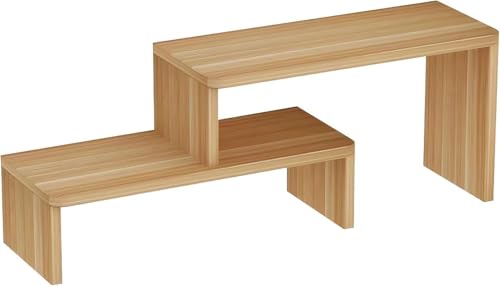 FOTN - رف كتب صغير قابل للتمدد من الخشب الصلب لسطح المكتب من فوتن، رف تخزين بسيط للطلاب، رف تخزين للفوضى، خزانة كتب صغيرة متعددة الطبقات لتنظيم مستحضرات التجميل