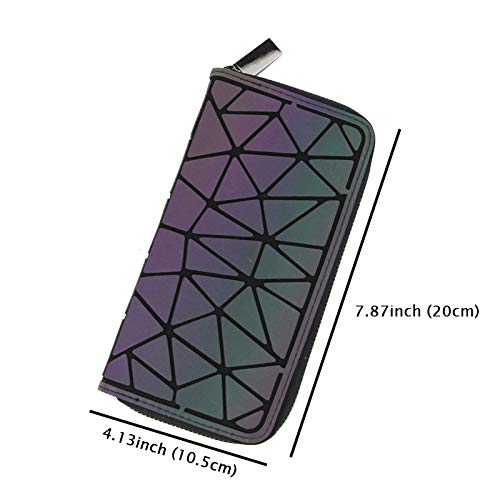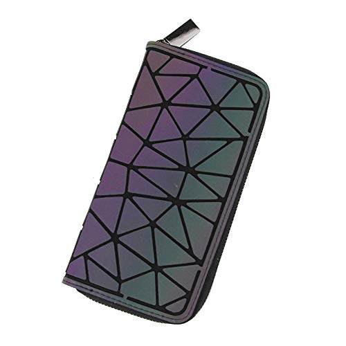 FOUCPOOM - محفظة جلدية للنساء بتصميم عصري، لون هولوجرافيك مضيء مع أقسام متعددة وفتحات للبطاقات