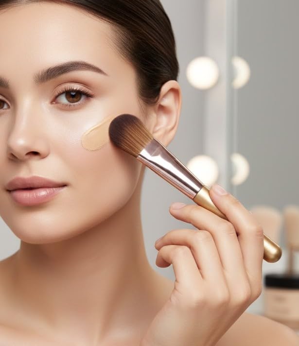 • أ. فرشاة المكياج: فرش كريم الأساس ناعمة وكثيفة وحريرية، مما يوفر لك شعورًا مريحًا وسلسًا؛ يمكن استخدام الفرشاة لوضع بودرة الأساس وأحمر الخدود وكريم الأساس السائل وكريم الأساس الكريمي، فهي جيدة لجعل كريم الأساس الخاص بك يبدو لطيفًا ورائعًا.