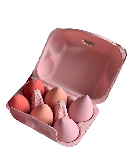 Generic - مجموعة إسفنجات كريم أساس بيضاوية الشكل لمزج الكونسيلر وبودرة الخدود بشكل متساوٍ مصنوعة من السيليكون الصناعي وقابلة لإعادة الاستخدام، 6 قطع، لون وردي