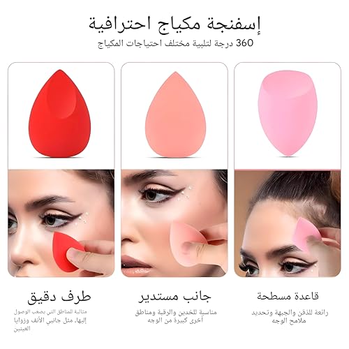 - تحتوي هذه المجموعة على ستة إسفنجات مكياج على شكل بيضة، مصممة للاستخدام الدقيق والمزج السلس بين كريم الأساس والكونسيلر وأحمر الخدود، مما يوفر تنوعًا في طرق الاستخدام الجاف والرطب.