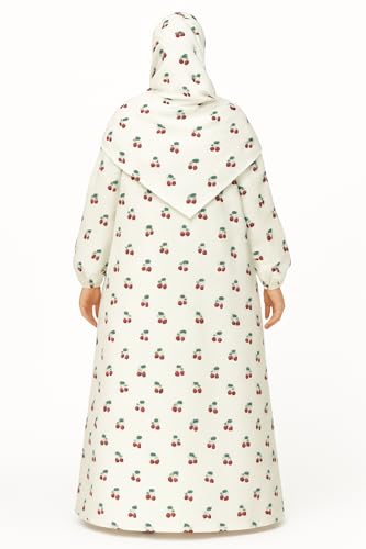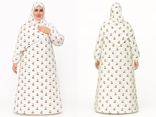 Generic - إسدال صلاة بيضاء بنقشة كرز مرِحة – قصّة واسعة بطرحة متناسقة وتغطية كاملة تمنحك أناقة محتشمة وراحة في المنزل من فور اتش كود 3003 (ابيض كرز، M)