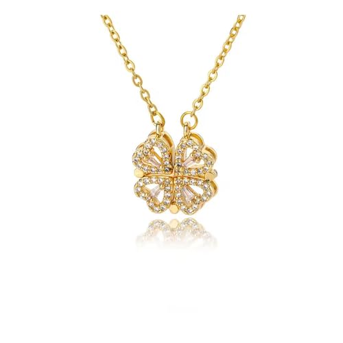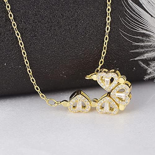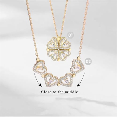 Generic - كوليه على شكل اربع قلوب متلاصقة بمغناطيس مزينة بفصوص زراكون ستانلس ستيل ضد تغيير اللون عقد 2*1 يمكن تغيير شكله للنساء والبنات