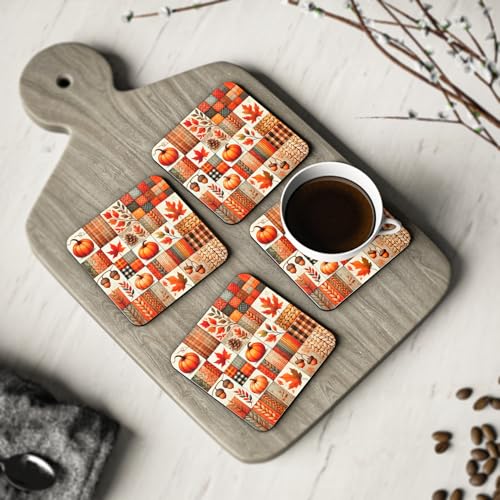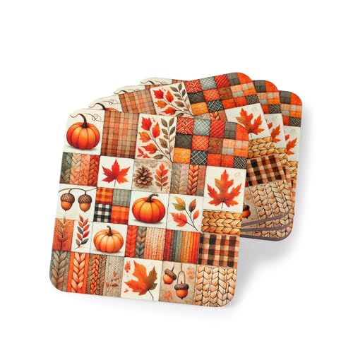 Generic - مجموعة قواعد اكواب بتصميم يقطين الخريف مكونة من 4 قطع - قواعد اكواب مطاطية بتصميم اوراق الخريف والبلوط لديكور الهالوين وعيد الشكر - قواعد اكواب مطاطية انيقة ومقاومة للحرارة والماء، قاعدة اكواب -211