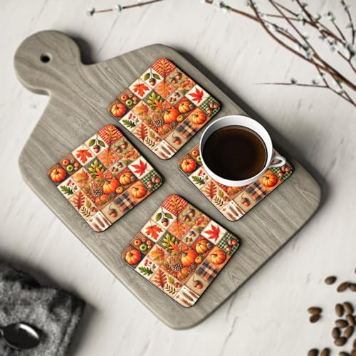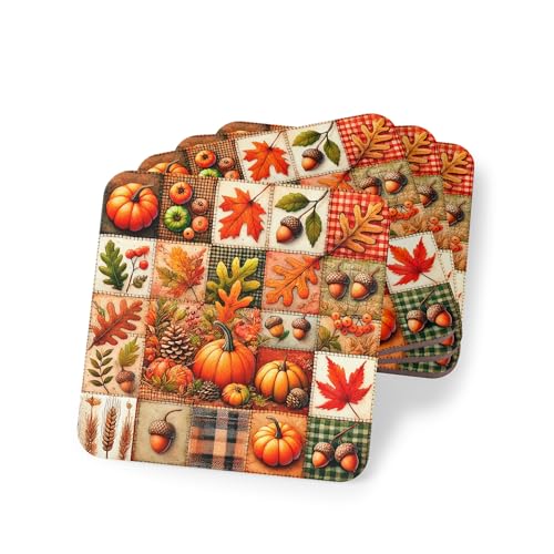 Generic - مجموعة قواعد اكواب بتصميم يقطين الخريف مكونة من 4 قطع - قواعد اكواب مطاطية بتصميم اوراق الخريف والبلوط لديكور الهالوين وعيد الشكر - قواعد اكواب مطاطية انيقة ومقاومة للحرارة والماء، قاعدة اكواب -212