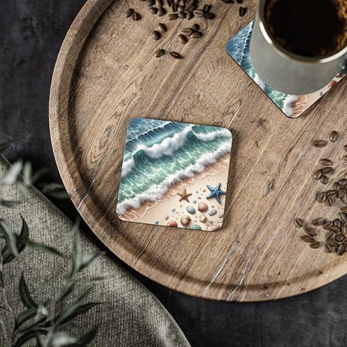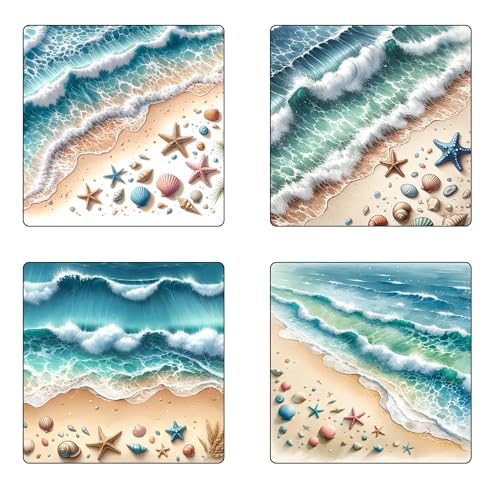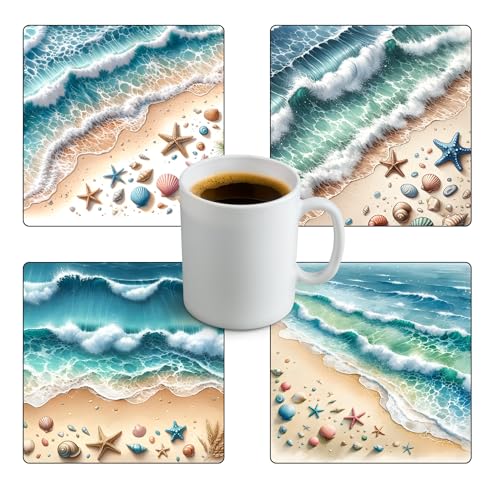 Generic - قواعد أكواب مطاطية بتصميم الشاطئ، قواعد أكواب شاي أو مجات قهوة وقواعد أكواب منزلية للمطبخ، 4 قطع، 22