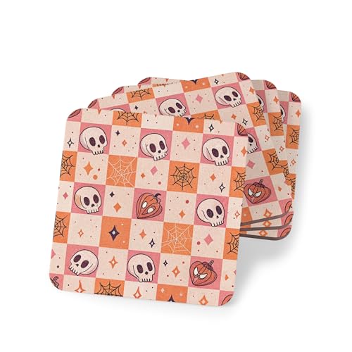 Generic - 4 قطع من قواعد الاكواب المطاطية بنمط رقعة الشطرنج مع جماجم ويقطين - قواعد اكواب مطاطية انيقة ومقاومة للحرارة ومقاومة للماء، قاعدة اكواب - 186