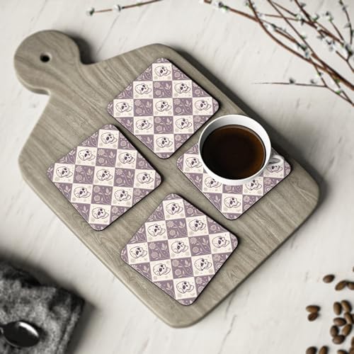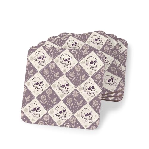 Generic - 4 قطع من قواعد الاكواب الخشبية بتصميم جمجمة وزهور - قواعد اكواب خشبية انيقة ومقاومة للحرارة ومقاومة للماء، قاعدة اكواب - 193
