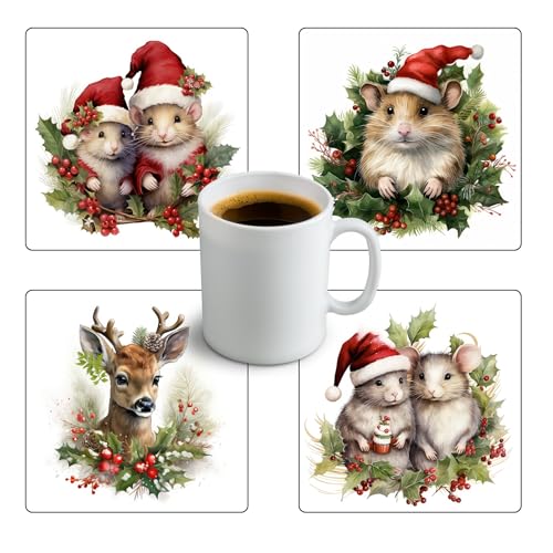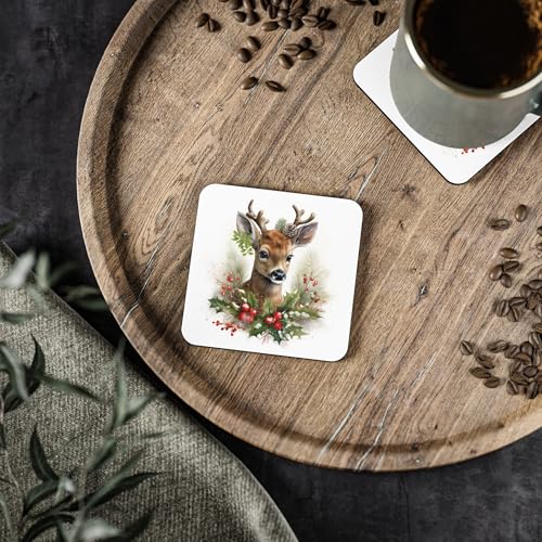 Generic - قواعد اكواب خشبية بتصميم حيوانات الكريسماس، اكواب شاي | قواعد اكواب قهوة وقواعد اكواب للمطبخ المنزلي - 4 قطع - 15