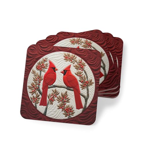 Generic - مجموعة قواعد اكواب بتصميم طيور الكاردينال للكريسماس مكونة من 4 قطع - قواعد اكواب انيقة بتصميم طائر احمر لديكور المنزل والهدايا - قواعد اكواب مطاطية انيقة ومقاومة للحرارة والماء، قاعدة اكواب -232