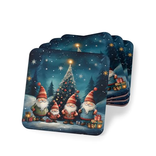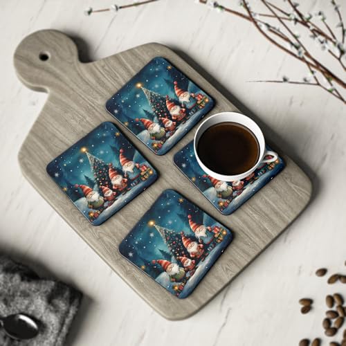Generic - قواعد أكواب كريسماس جنومز، طقم من 4 قطع للعطلات بتصميم أربعة أقزام لطيفة لديكور المنزل الاحتفالي وقواعد أكواب خشبية، قواعد أكواب خشبية للمشروبات أنيقة ومقاومة للحرارة ومقاومة للمياه كود Coaster-227