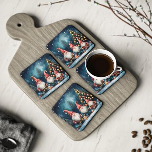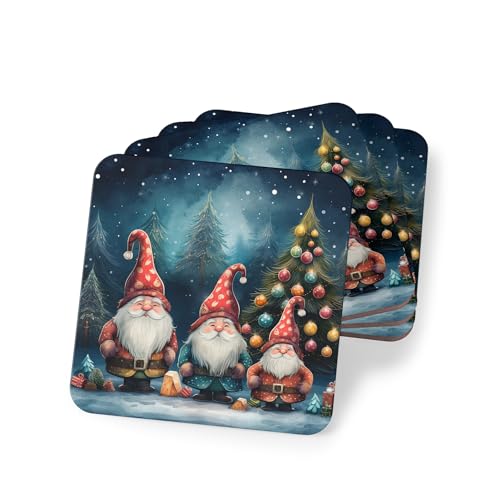 Generic - مجموعة قواعد اكواب بتصميم اقزام الكريسماس مكونة من 4 قطع - قواعد اكواب خشبية لطيفة لديكور المنزل والاحتفالات - قواعد اكواب خشبية انيقة ومقاومة للحرارة والماء - 228