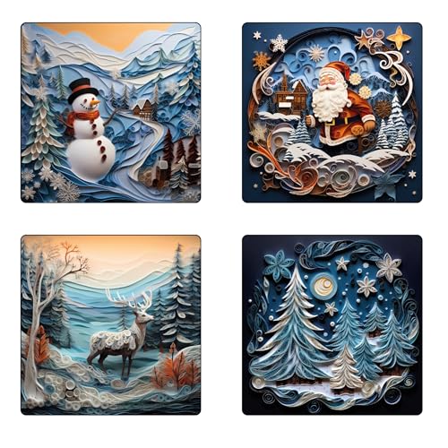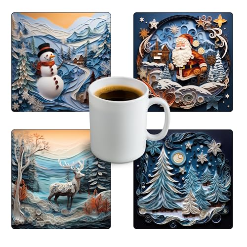 Generic - قواعد أكواب مطاطية للكريسماس 18 | قواعد لأكواب الشاي ومجات القهوة والكاسات للمطبخ المنزلي - 4 قطع