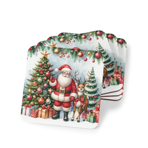 Generic - طقم قواعد اكواب كلاسيكية من 4 قطع بتصميم سانتا كلوز وحيوان الرنة والهدايا - ديكور للعطلات للاكواب والاكواب - قواعد اكواب مطاطية انيقة ومقاومة للحرارة والماء، قواعد اكواب -265