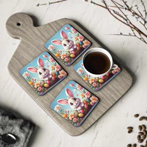 Generic - طقم قواعد اكواب من 4 قطع بتصميم ارنب صغير لطيف وزهور الربيع والباستيل - ديكور للعطلات للاكواب والاكواب - قواعد اكواب مطاطية انيقة ومقاومة للحرارة ومقاومة للماء