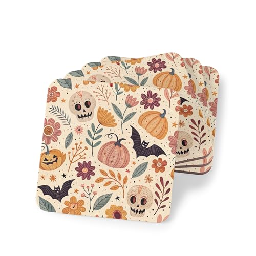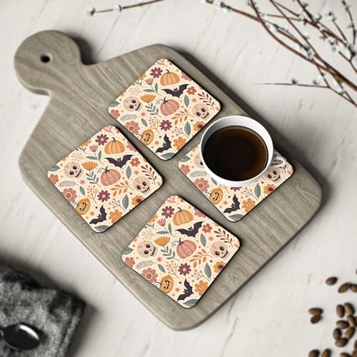 Generic - قواعد أكواب خشبية بنمط جماجم وخفافيش ويقطين من اربع قطع - قواعد أكواب خشبية أنيقة ومقاومة للحرارة والماء، قاعدة أكواب - 197