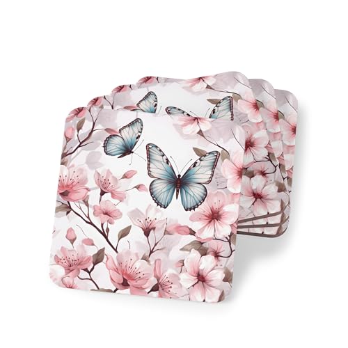 Generic - طقم قواعد اكواب من 4 قطع بتصميم زهور بلون بينك باستيل - ديكور للعطلات للاكواب والاكواب - قواعد اكواب مطاطية انيقة ومقاومة للحرارة والماء، قواعد اكواب - 298