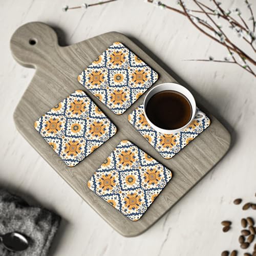Generic - قواعد أكواب خشبية بنمط فارسي - 130 - كلاسيكية ريفية سجادات خشبية أنيقة للمشروبات مع جمالية عتيقة - مجموعة من 4 قطع