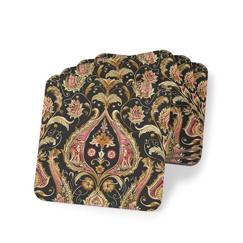Generic - قواعد أكواب خشبية 137 بنمط فارسي من اربع قطع، قواعد اكواب كلاسيكية ريفية - سجادات مشروبات خشبية انيقة مع جمالية عتيقة - مجموعة من 4 قطع