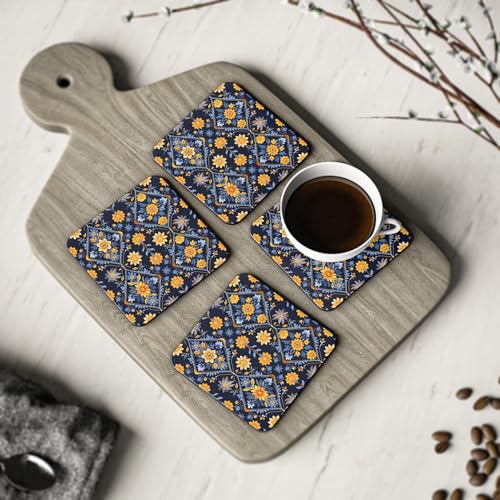 Generic - قواعد أكواب خشبية بنمط فارسي، قواعد أكواب كلاسيكية ريفية، مفارش مشروبات خشبية أنيقة مع جمالية عتيقة، مجموعة من 4 قطع - قواعد أكواب - 142
