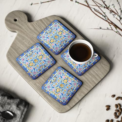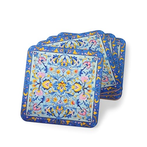 Generic - قواعد اكواب خشبية بنمط فارسي من اربع قطع، قواعد اكواب كلاسيكية ريفية - سجادات مشروبات خشبية انيقة مع جمالية عتيقة - مجموعة من 4 قطع - قواعد اكواب - 161