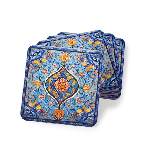 Generic - قواعد اكواب خشبية بنمط فارسي من اربع قطع، قواعد اكواب كلاسيكية ريفية - سجادات مشروبات خشبية انيقة مع جمالية عتيقة - مجموعة من 4 قطع - قواعد اكواب - 172