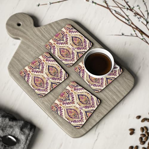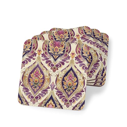 Generic - قواعد اكواب خشبية بنمط فارسي رمضان، قواعد اكواب كلاسيكية ريفية - سجادات مشروبات خشبية انيقة مع جمالية عتيقة - مجموعة من 4 قطع - قواعد اكواب - 100