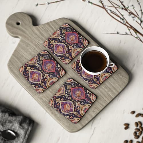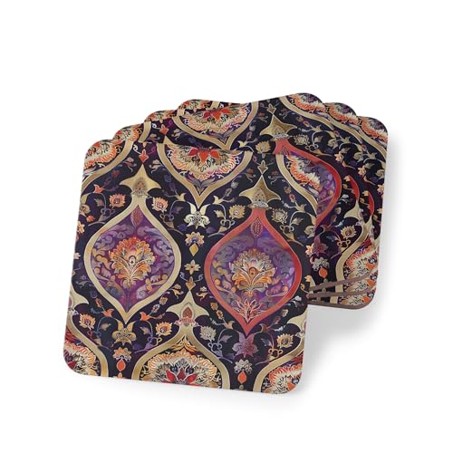 Generic - مجموعة قواعد أكواب من الخشب بنمط فارسي رمضاني، قواعد أكواب كلاسيك ريفية، قواعد مشروبات خشب أنيقة بتصميم جميل عتيق، مجموعة من 4 قطع، قواعد أكواب، 108