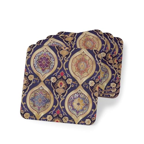 Generic - قواعد اكواب خشبية بنمط فارسي رمضان، قواعد اكواب كلاسيكية ريفية - سجادات مشروبات خشبية انيقة مع جمالية عتيقة - مجموعة من 4 قطع - قواعد اكواب - 109