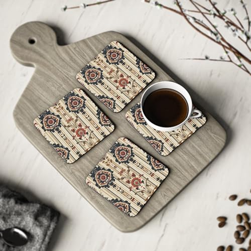 Generic - قواعد أكواب خشبية بنمط فارسي لرمضان بتصميم كلاسيكي ريفي أنيق خشبي مع لمسة جمالية عتيقة للمشروبات، مجموعة من 4 قطع - قاعدة أكواب - 85
