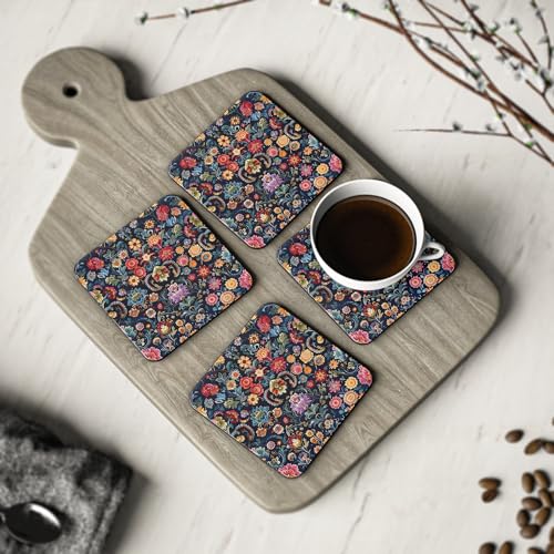 - مجموعة من 4 قواعد أكواب خشبية ملونة عالية الجودة