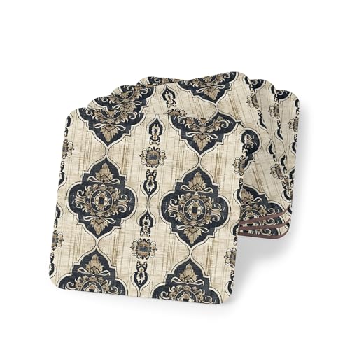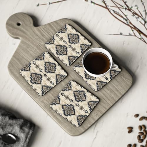 Generic - قواعد أكواب خشبية 79 بنمط فارسي لرمضان بتصميم دمشقي كلاسيكي ريفي أنيق خشبي مع لمسة جمالية عتيقة للمشروبات، مجموعة من 4 قطع