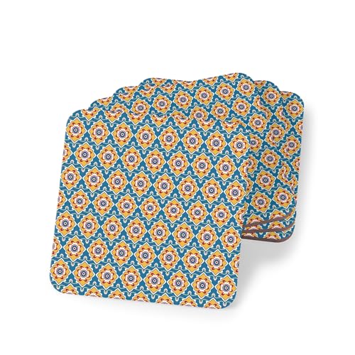 Generic - قاعدة أكواب خشبية بنمط فارسي لشهر رمضان نابضة بالحياة بنمط بلاط مستوحى من المغرب مقاومة للحرارة والانسكاب، مجموعة من 4 قطع، 69