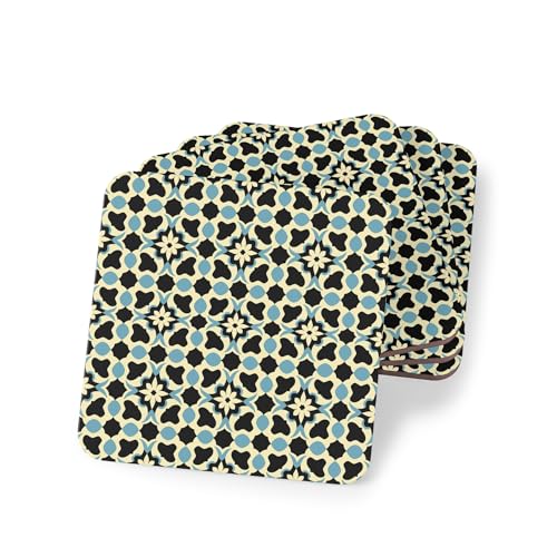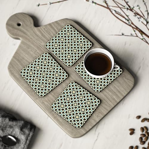 Generic - مجموعة قواعد أكواب خشبية بنمط فارسي لشهر رمضان، قواعد أكواب خشبية بتصميم بلاط مغربي، متينة للمنزل والمكتب - مجموعة مكونة من 4 قطع - قواعد أكواب - 60
