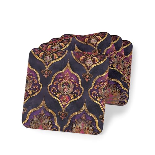 Generic - قواعد أكواب مطاطية بنمط فارسي عتيق بنمط زهور من 4 قطع- قواعد أكواب مطاطية أنيقة ومقاومة للحرارة والماء، أكواب شاي - أكواب قهوة وقواعد أكواب - 105