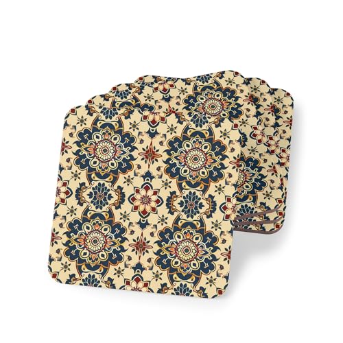 Generic - قواعد أكواب مطاطية بنمط فارسي عتيق بنمط زهور من 4 قطع- قواعد أكواب مطاطية أنيقة ومقاومة للحرارة والماء، أكواب شاي - أكواب قهوة وقواعد أكواب - 124