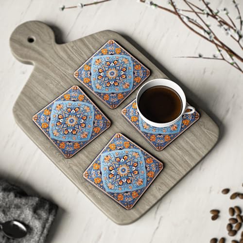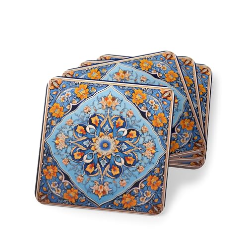 Generic - 4 قطع من قواعد الاكواب المطاطية بنمط فارسي عتيق بنمط زهور - قواعد اكواب مطاطية انيقة ومقاومة للحرارة والماء، اكواب شاي - اكواب قهوة وقواعد اكواب - 166