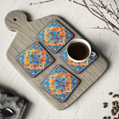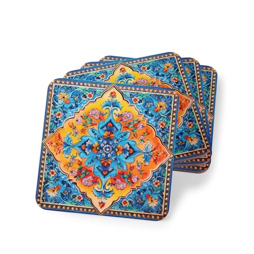 Generic - 4 قطع من قواعد الاكواب المطاطية بنمط فارسي عتيق بنمط زهور - قواعد اكواب مطاطية انيقة ومقاومة للحرارة والماء، اكواب شاي - اكواب قهوة وقواعد اكواب - 169