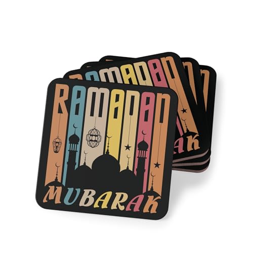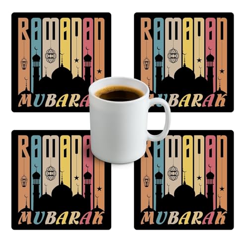 Generic - قواعد أكواب مطاطية بنمط شهر رمضان، 4 قطع، قواعد لأكواب الشاي | قواعد لأكواب القهوة وقواعد للأكواب للمطبخ المنزلي - تصميم 45