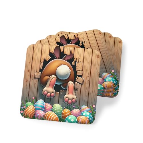 Generic - ارنب ربيعي ريفي وبيض ملون - مجموعة قواعد اكواب بنمط بيت المزرعة - ديكور للعطلات للاكواب والاكواب - قواعد اكواب مطاطية انيقة ومقاومة للحرارة ومقاومة للماء من 4 قطع