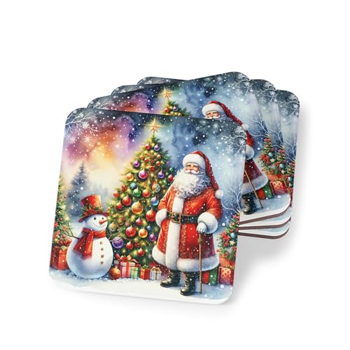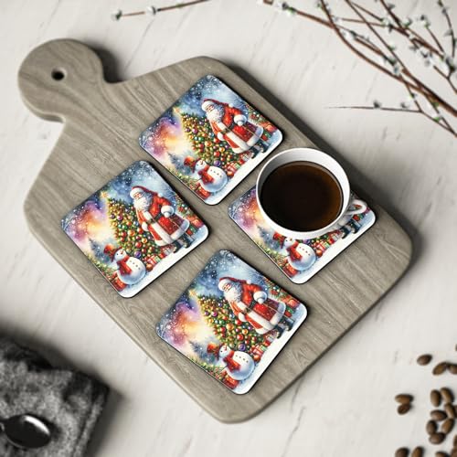 Generic - طقم قواعد اكواب بتصميم سانتا كلوز ورجل الثلج وشجرة الكريسماس من 4 قطع - ديكور للعطلات للاكواب والاكواب - قواعد اكواب مطاطية انيقة ومقاومة للحرارة والماء، قواعد اكواب -267