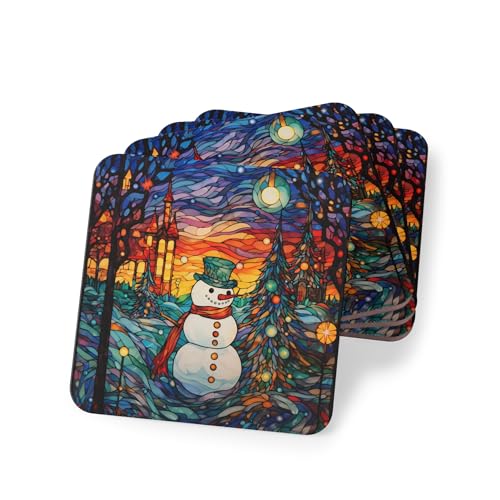 generic - طقم قواعد اكواب بتصميم رجل الثلج وقرية الكريسماس مكون من 4 قطع - ديكور للعطلات للاكواب والاكواب - قواعد اكواب مطاطية انيقة ومقاومة للحرارة والماء، قاعدة اكواب -259