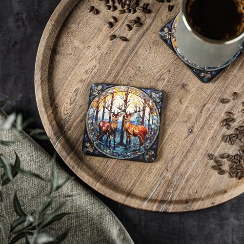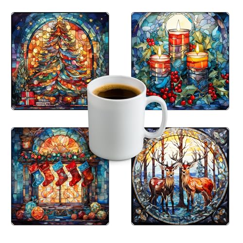 Generic - قواعد اكواب خشبية من الزجاج الملون للكريسماس، اكواب شاي | قواعد اكواب قهوة وقواعد اكواب للمنزل والمطبخ - 4 قطع - 28