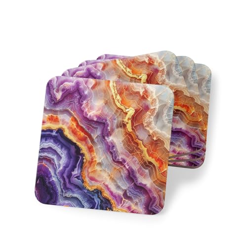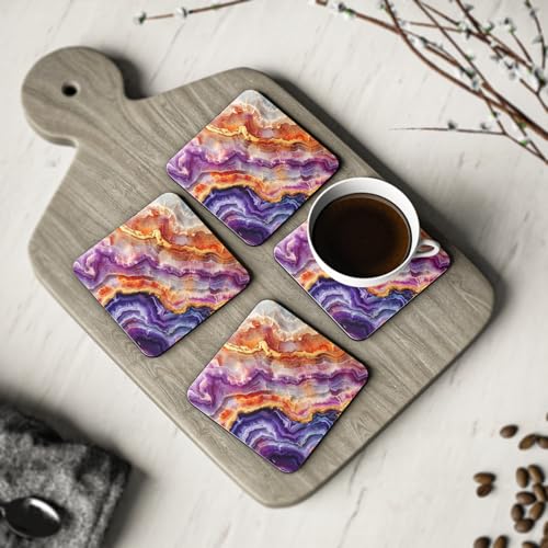 Generic - طقم قواعد اكواب من عقيق ارجواني وبرتقالي نابض بالحياة مكون من 4 قطع - ديكور للعطلات للاكواب والاكواب - قواعد اكواب مطاطية انيقة ومقاومة للحرارة والماء، قواعد اكواب - 280