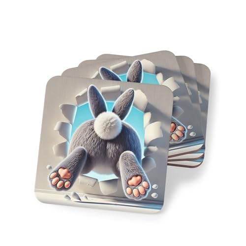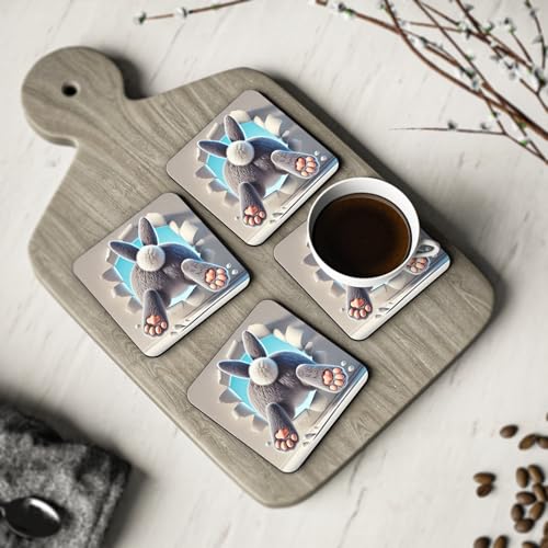 Generic - طقم قواعد اكواب من 4 قطع بتصميم ذيل ارنب رمادي ثلاثي الابعاد وكفوف تقفز الى فتحة - ديكور للعطلات للاكواب والاكواب - قواعد اكواب خشبية انيقة ومقاومة للحرارة والماء