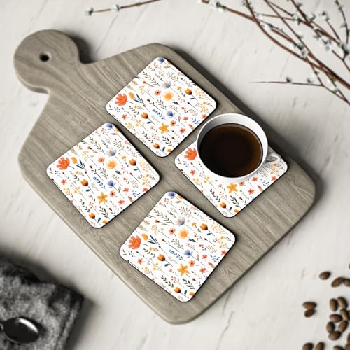 Generic - طقم قواعد اكواب خشبية بتصميم زهور برية من 4 قطع - ديكور للعطلات للاكواب والاكواب - قواعد اكواب خشبية انيقة ومقاومة للحرارة ومقاومة للماء، قواعد اكواب - 288