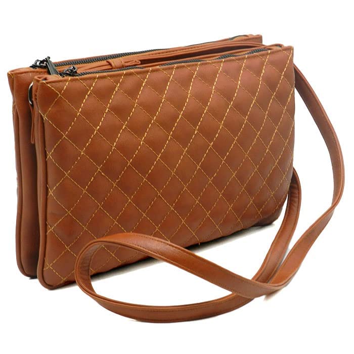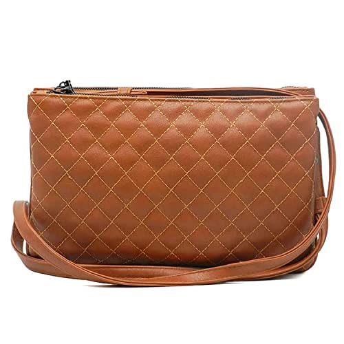 Fourteen - شنط يد بحزام كروس للنساء كاجوال مصنوعة من خامات متعددة فورتين 11189 بني فاتح