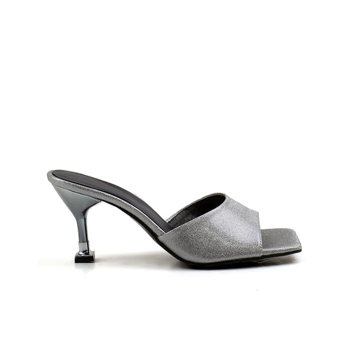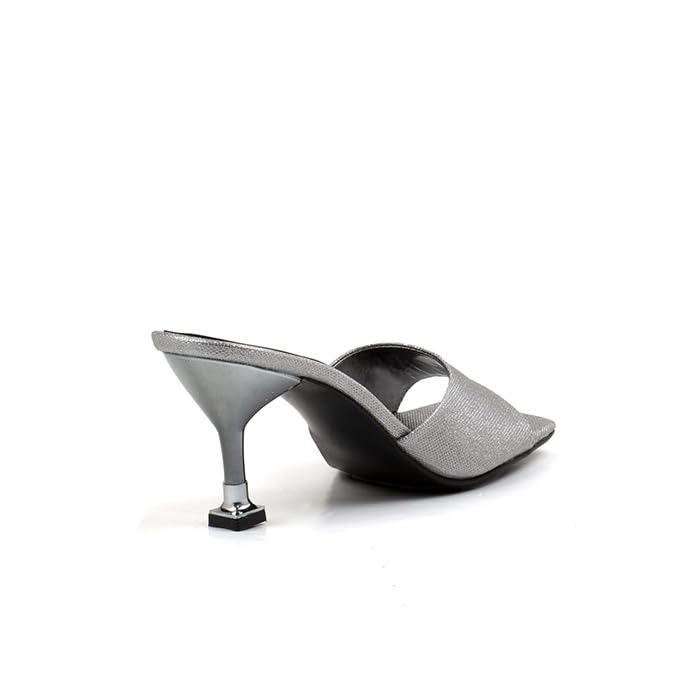 Fourteen - صندل بكعب عالي مفتوح من الخلف طراز YA703231457437038 للنساء من فورتين - تصميم مختلط بلون فضي داكن وكريستالي، مقاس EU 38